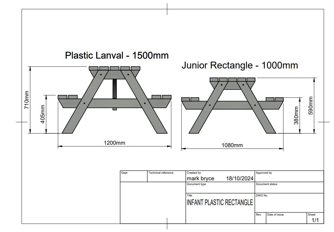 Manufactured by us in the UK, our Junior Recycled Plastic Rectangle Picnic Table is ideal for schools, parks and playgrounds wanting a safe, hygienic, washable picnic table that lasts.
