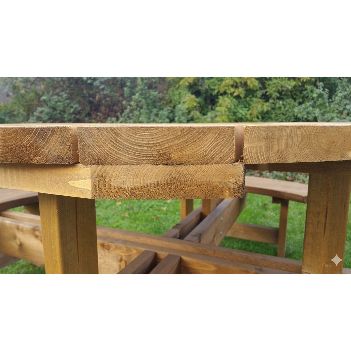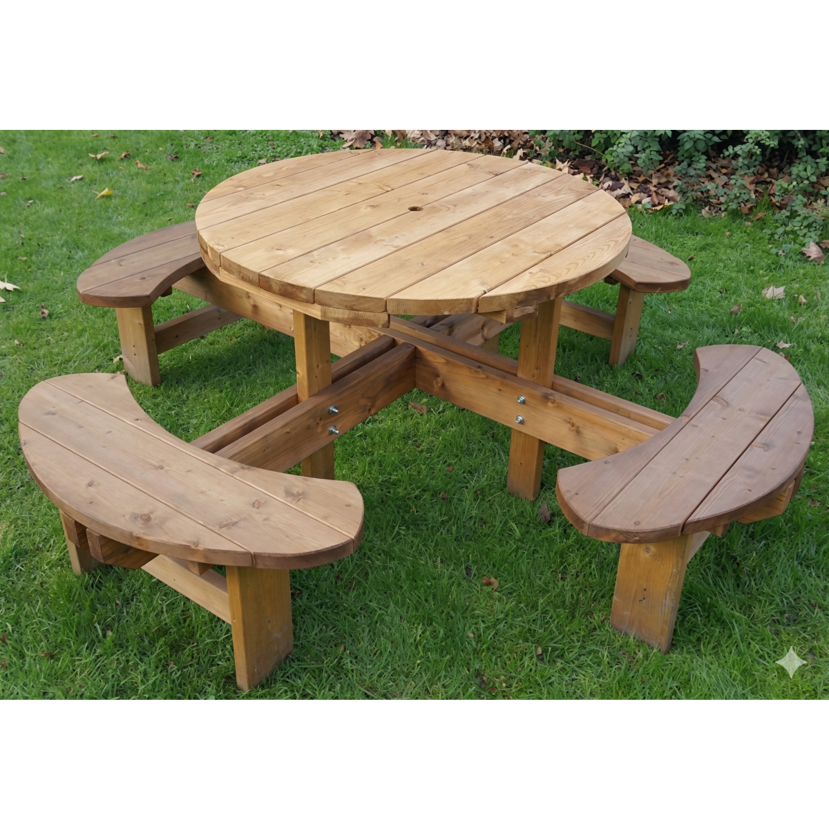 The standard Excalibur is now available in King Size. A very heavy duty, commercial grade picnic table bench ready for any situation. The King Size Excalibur Round Picnic Table is constructed with the same great qualities of our Supersized Excalibur Picnic Table, combined with the table top of our standard Excalibur Picnic Table. This design allows for very easy access seating as there are no obstructions when sitting up or down.