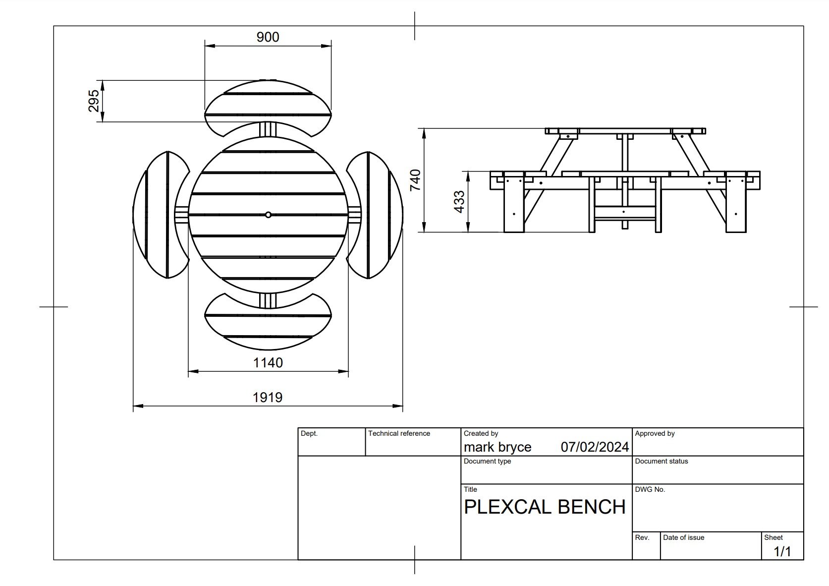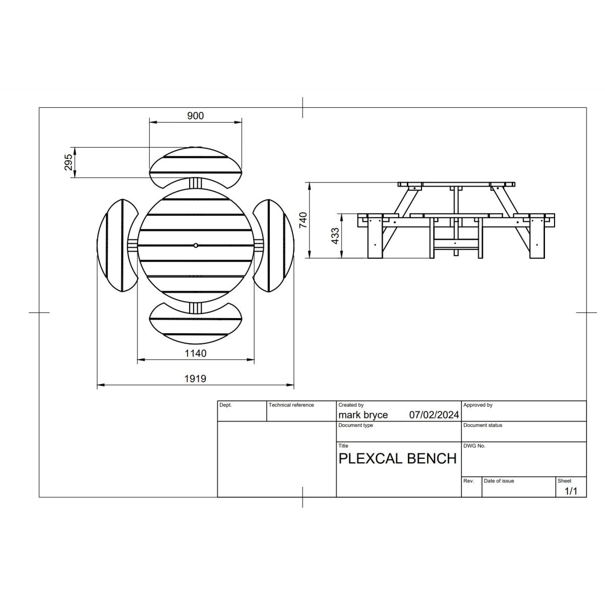 - Constructed from 100% Recycled Plastic 38mm Thick, throughout the design