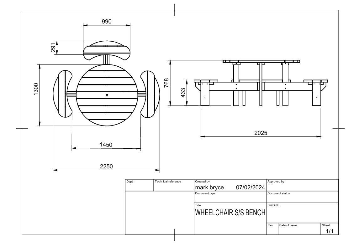 The Supersized Wheelchair Accessible Round Picnic Bench is made from season treated pine, which is also planed and provides the bench with a smooth finish, making this picnic table ideal for schools and pubs.